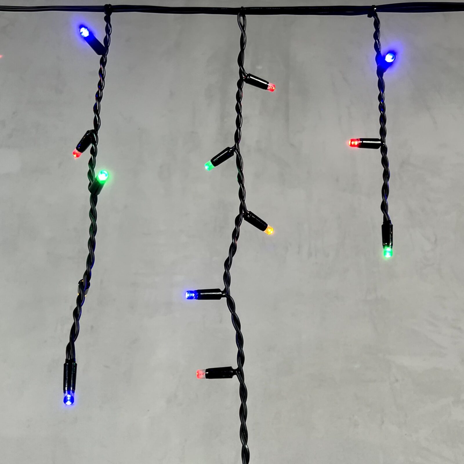 Гирлянда Бахрома 3,1 м Разноцветная Статика, 120 LED, Чёрный Каучук, IP65, LTC