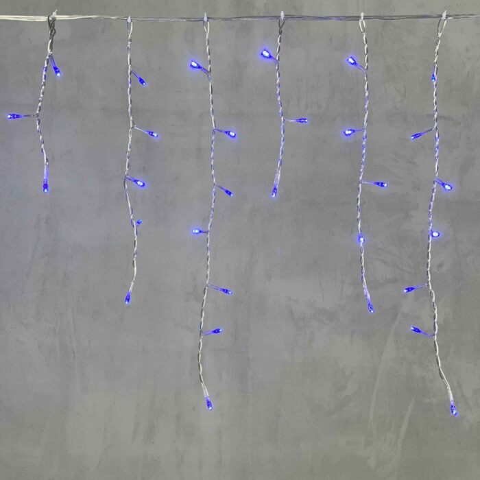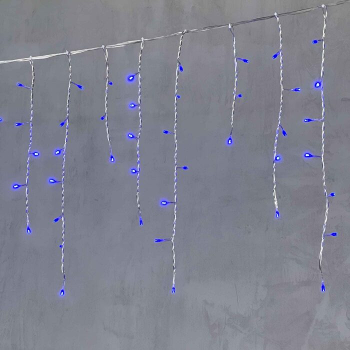 Синяя гирлянда-бахрома длиной 3,1 м с 150 яркими светодиодами на прозрачном проводе. Статичное холодное свечение, защита IP54, монтаж на улицу. Идеальна для украшения фасадов, навесов, веранд. Подключение уже в комплекте. Подходит для соединения до 10 штук в одну линию.