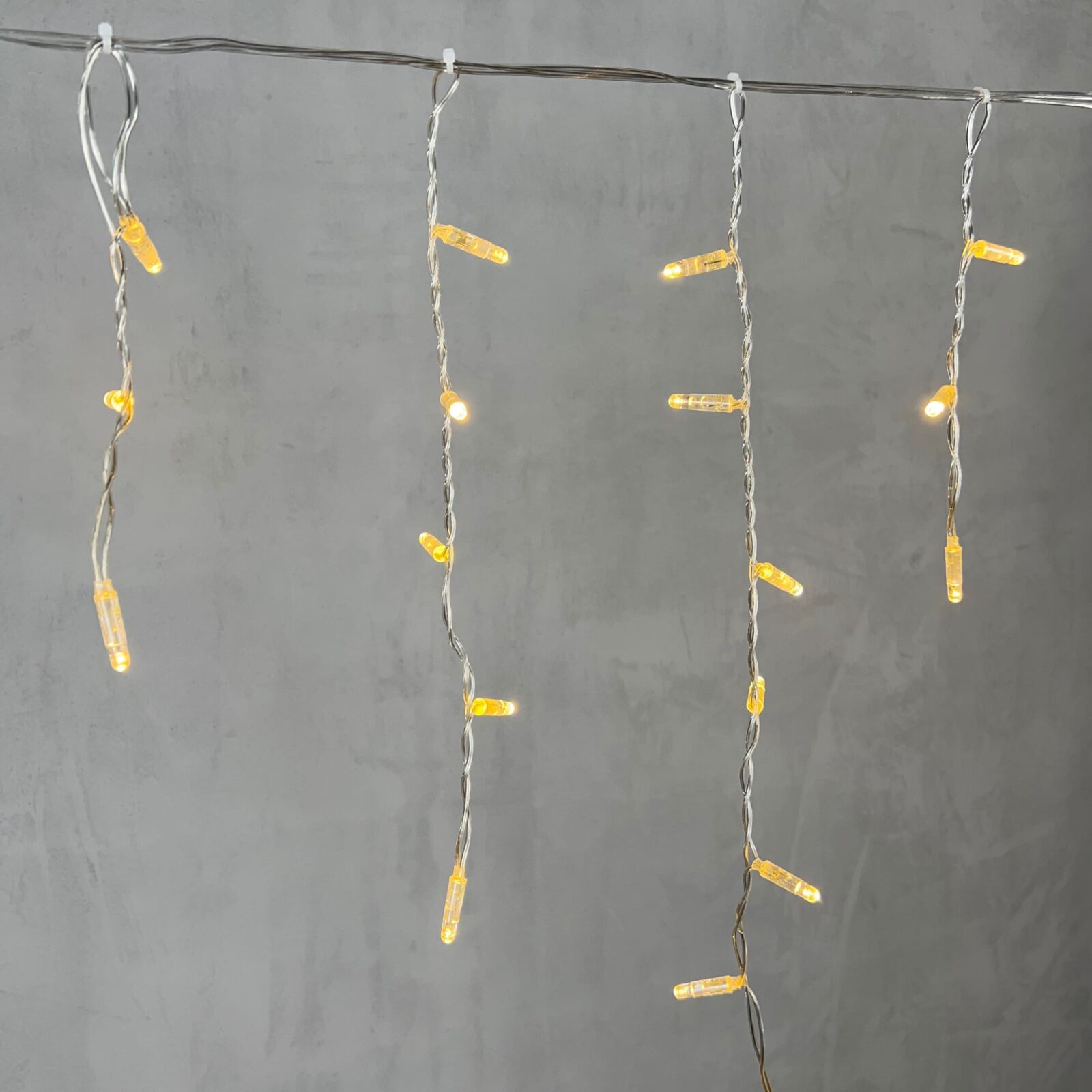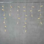 Классическая гирлянда бахрома с тёплым белым светом и декоративными колпачками. 120 LED, 3,1 м длина, высота свесов — 0,5 м. Свет мягкий и равномерный. Прозрачный ПВХ-провод не бросается в глаза днём. IP65 — защита от дождя и снега. Идеально для фасадов, входных групп, террас. Надёжно и стильно.