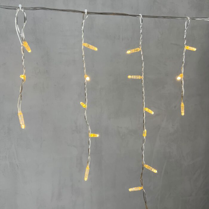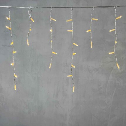 Класс защиты IP65 гарантирует устойчивость к осадкам и пыли. Гирлянда спокойно работает на улице: ей не страшны снег, дождь, мороз, сырость и грязь. Рабочая температура — от −30 до +40 °C. Провод — прозрачный ПВХ: лёгкий, гибкий, визуально незаметен на светлых фасадах.