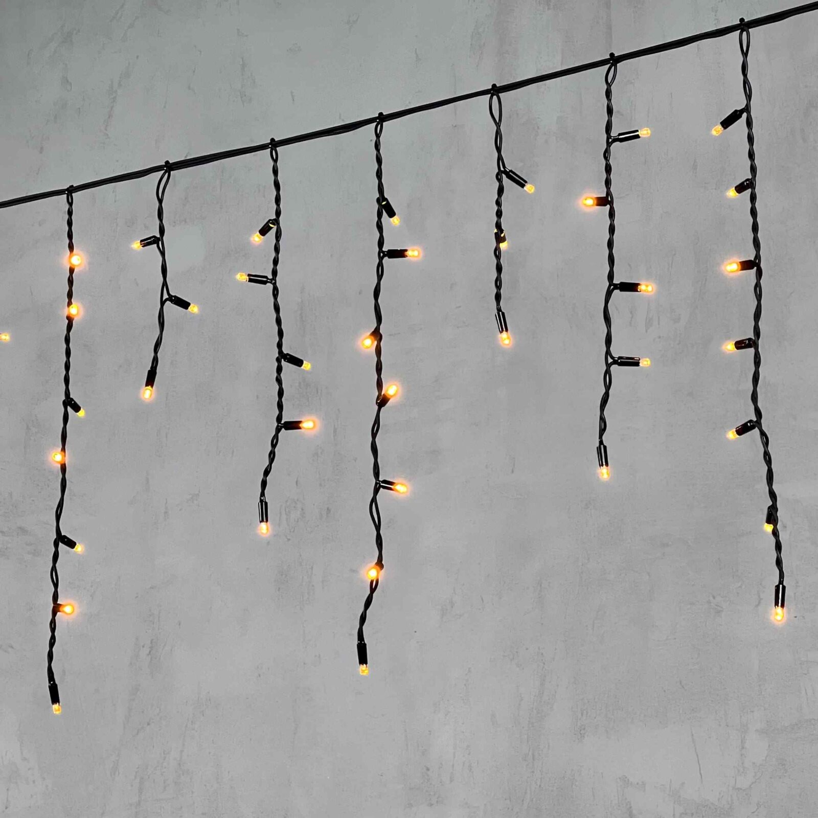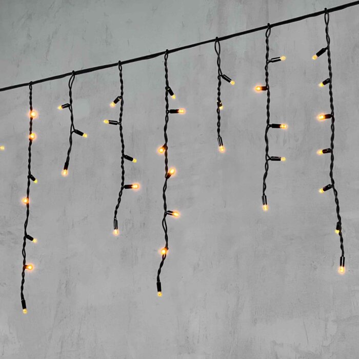 Жёлтая фасадная гирлянда длиной 3,1 м — тёплый яркий акцент для новогоднего оформления и круглогодичной подсветки. Прочный чёрный провод, IP65, профессиональный монтаж без хлопот.