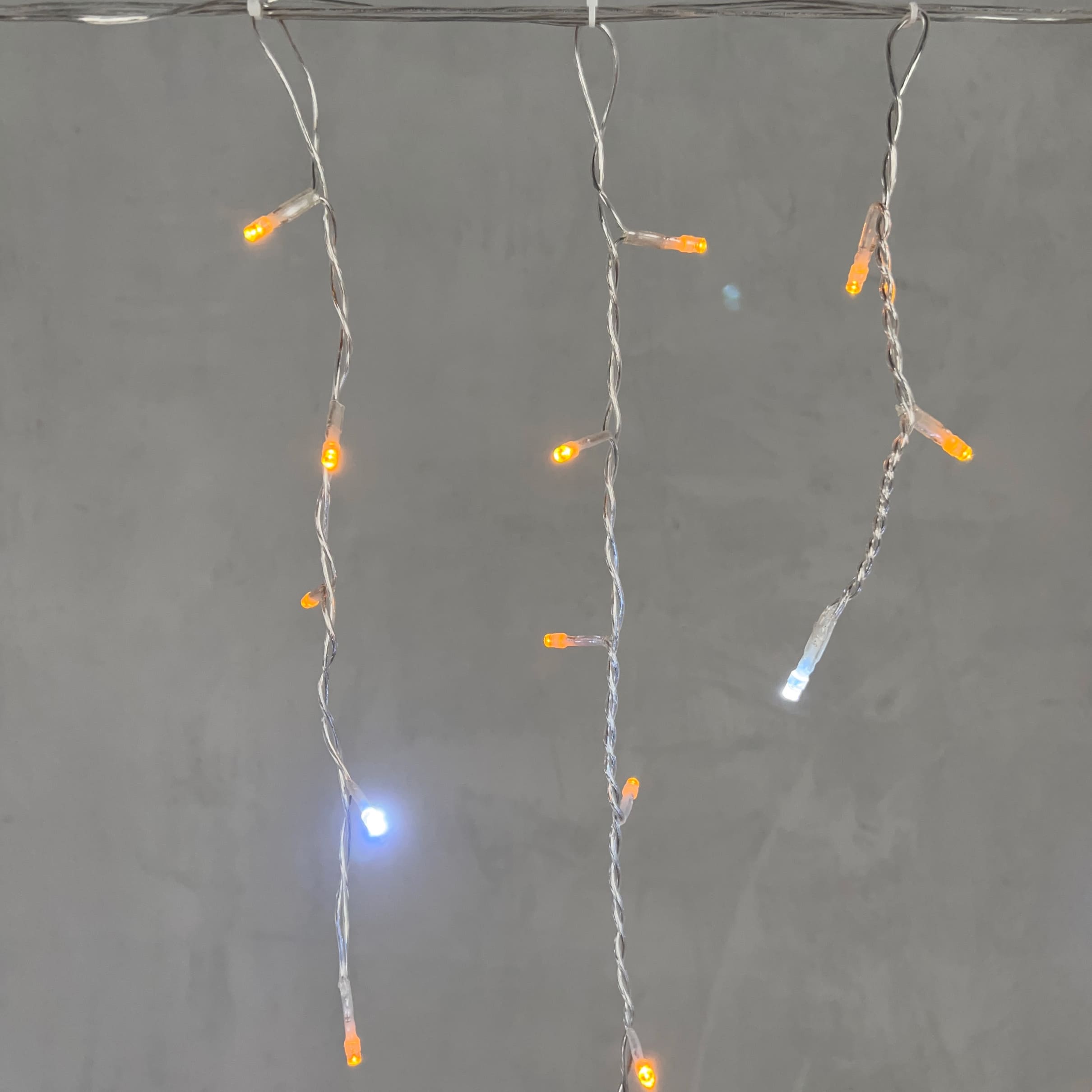 Жёлтая гирлянда-бахрома длиной 3,1 м с белыми мерцающими диодами. 150 LED, прозрачный ПВХ-провод, IP54, подключение в комплекте. Идеальна для фасадов, крыш и входных групп. Соединяется в цепь до 10 гирлянд, работает от сети 220 В.