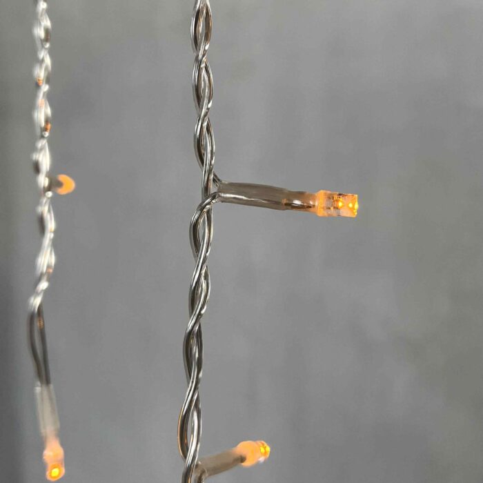 Гирлянда содержит 150 светодиодов, равномерно распределённых по длине 3,1 метра. Благодаря этому она выглядит эстетично и цельно: никаких «дырок» или тёмных участков. Цвет — чисто жёлтый, без зеленцы и бликов. Свет — статичный, без мерцания и раздражающих эффектов. Хорошо сочетается с тёплым белым, золотым и красным.