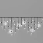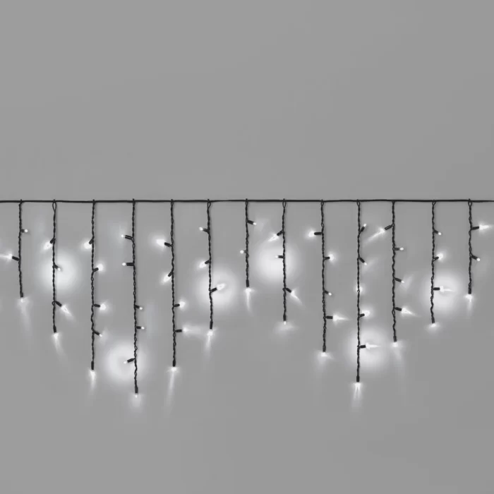 Профессиональная гирлянда-бахрома длиной 3 м, белое мерцающее свечение, 108 LED, чёрный каучуковый провод, степень защиты IP65. Подходит для улицы, фасадов, перил и заборов.