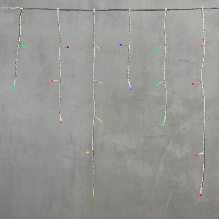 Гирлянда Бахрома 3 м Разноцветная Статика, 100 LED, Прозрачный Силикон, IP65, LTC (на батарейках, с таймером)