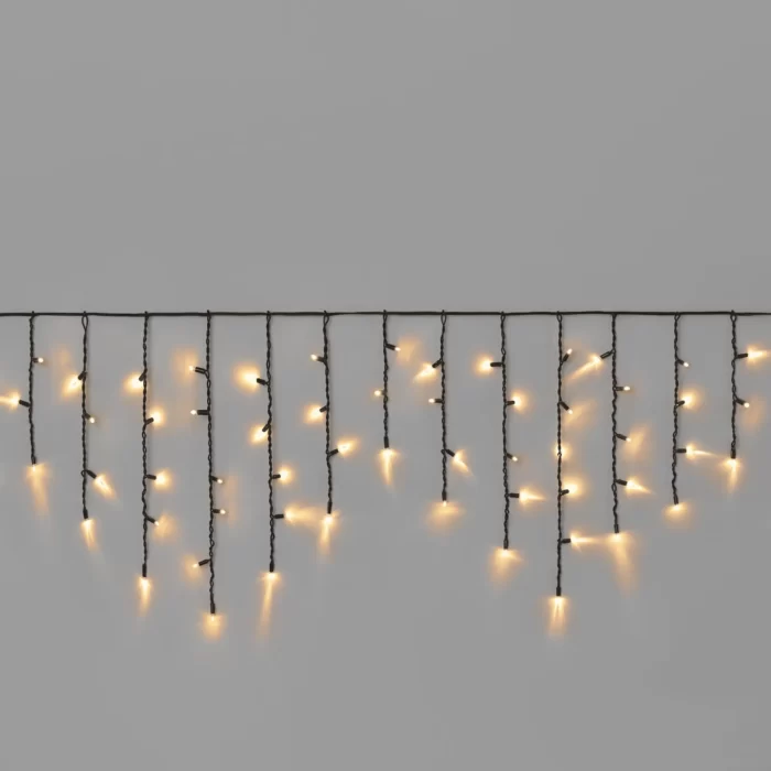 Гирлянда длиной 3 метра, высотой до 0,6 м и с 108 яркими светодиодами обеспечивает равномерное и выразительное освещение. Лучи разной длины (от 30 до 60 см) создают эффект «живой бахромы». Шаг между нитями — 12,5 см, что даёт плотную и красивую картинку.