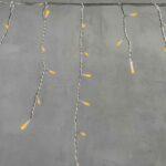 Гирлянда-бахрома длиной 3 м с тёплым жёлтым светом и 150 LED на прозрачном силиконовом проводе. Подходит для улицы. IP65. Безопасна и надёжна даже в мороз.
