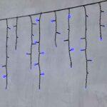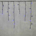Гирлянда бахрома длиной 4,9 м с синим свечением, 240 светодиодов, чёрный ПВХ-провод. Устойчива к погоде, степень защиты IP54. Идеальна для фасадов и навесов.