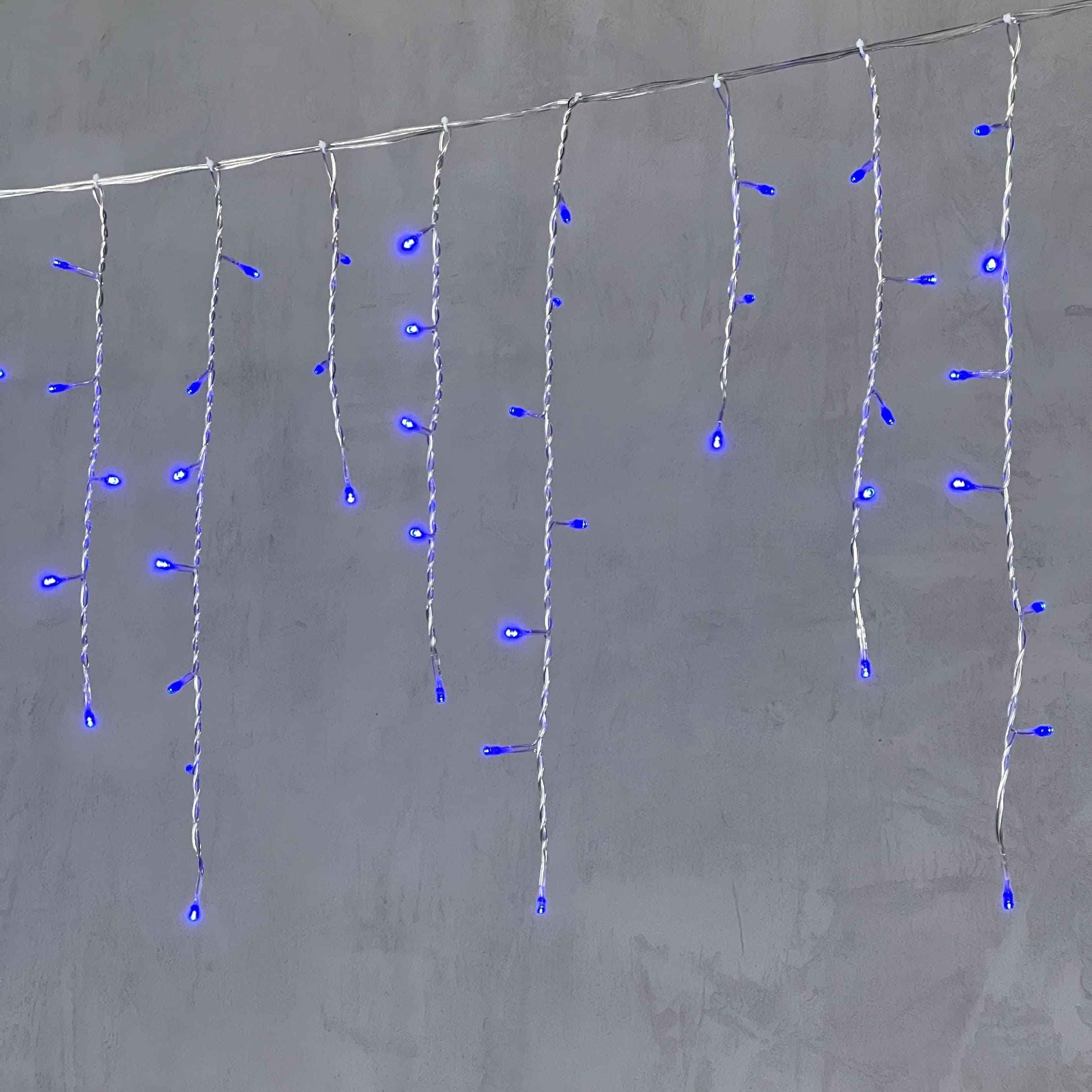 Гирлянда бахрома длиной 4,9 м с синим свечением. 240 LED на прозрачном ПВХ-проводе. Подходит для фасадов, козырьков, навесов. Работает от 220 В, защита IP54.