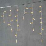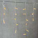 Уютная гирлянда-бахрома с тёплым белым свечением и декоративными колпачками. Длина 4,9 м, 195 светодиодов, IP65, прозрачный ПВХ-провод. Подходит для оформления фасадов частных домов.
