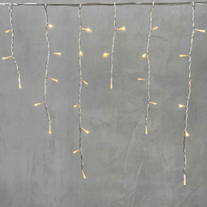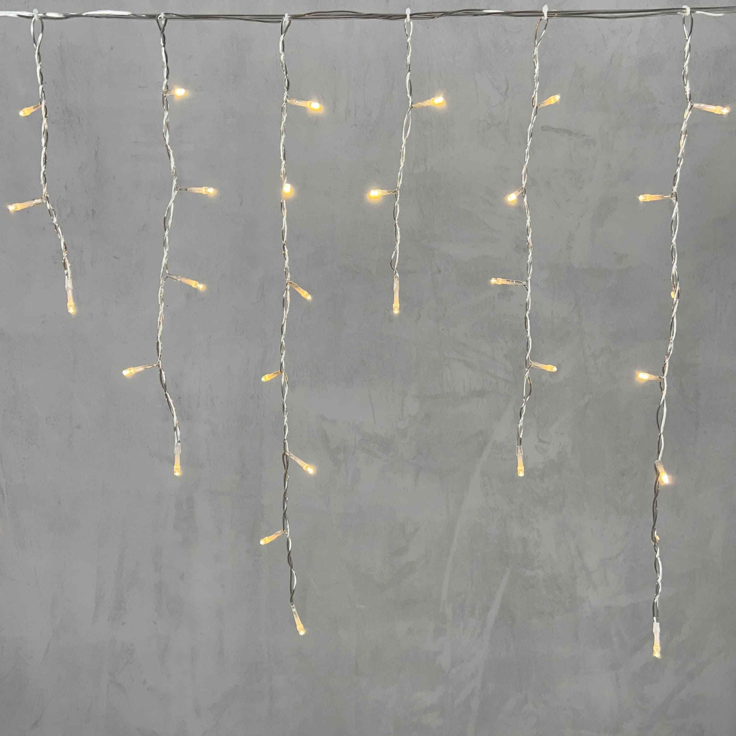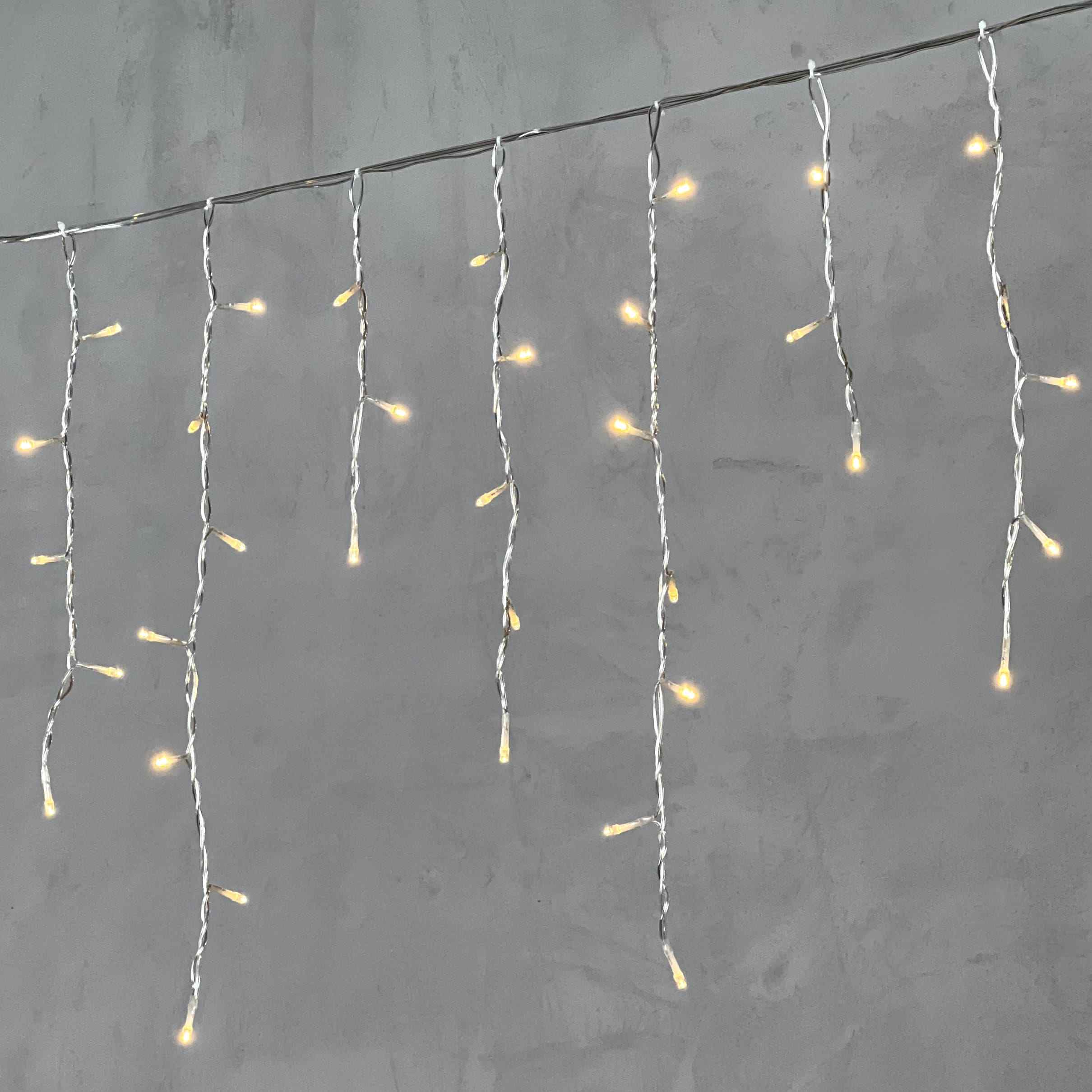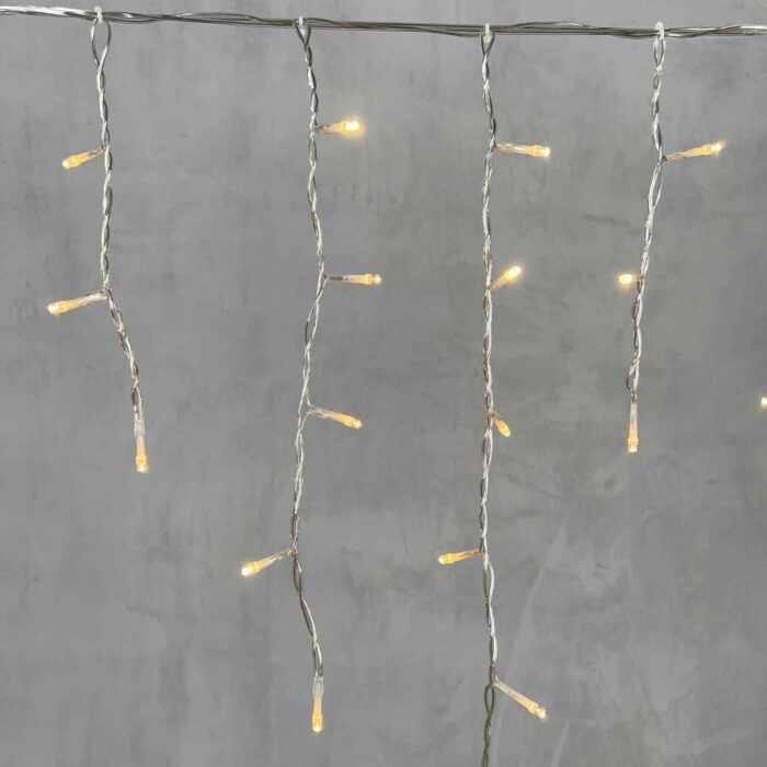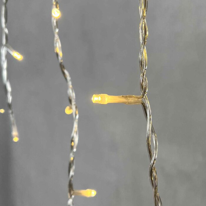 Гирлянда бахрома длиной 4,9 м с мягким тёплым свечением и 240 светодиодами. Прозрачный ПВХ-провод, степень защиты IP54. Идеальна для украшения фасадов, навесов и террас.