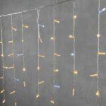 Гирлянда создаёт тёплое белое свечение, мягкое и комфортное для глаз. Каждый 10-й светодиод мерцает, добавляя динамику и эффект живого огня. Благодаря светорассеивающим колпачкам свет становится объёмным и выразительным, особенно в тёмное время суток. Такое оформление дарит ощущение уюта и праздника, а также подчёркивает архитектуру здания.