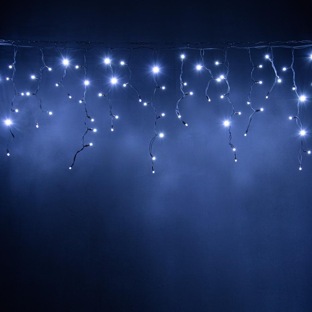 Профессиональная гирлянда-бахрома длиной 5 м с белым светом и эффектом мерцания. 210 ярких LED, прочный чёрный провод из морозостойкого каучука 3.3 мм, защита IP65. Подходит для улицы и помещений.