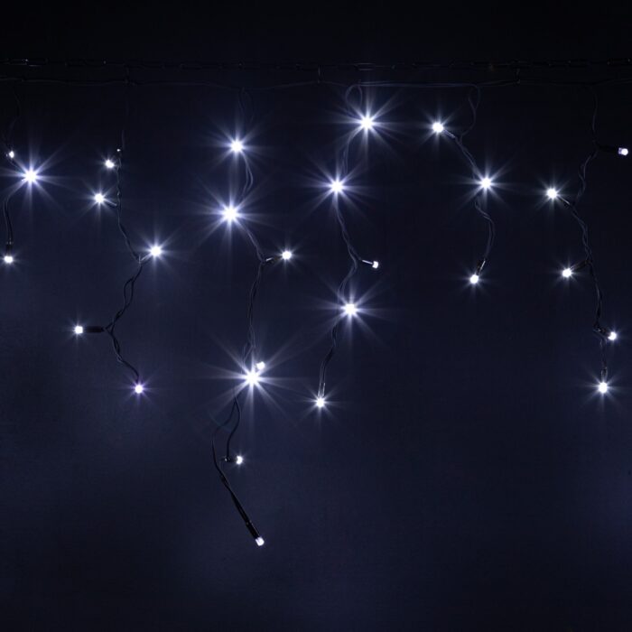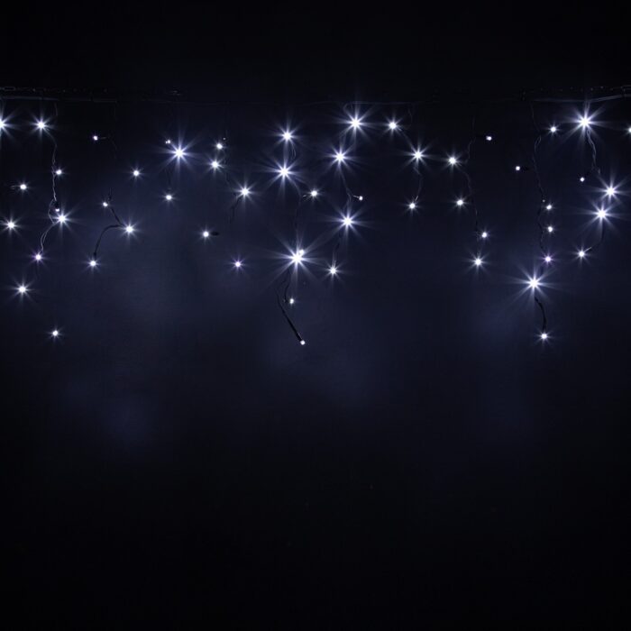 Гирлянда Бахрома 5 м Белая с мерцанием, 220 В, 150 LED, Провод чёрный каучук, IP65