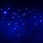 Гирлянда-бахрома 5 м с синим мигающим светом — для оформления фасадов, крыш, заборов. 150 диодов, IP65, провод 3.3 мм из каучука. Готова к уличному монтажу. В комплекте — сетевой кабель.