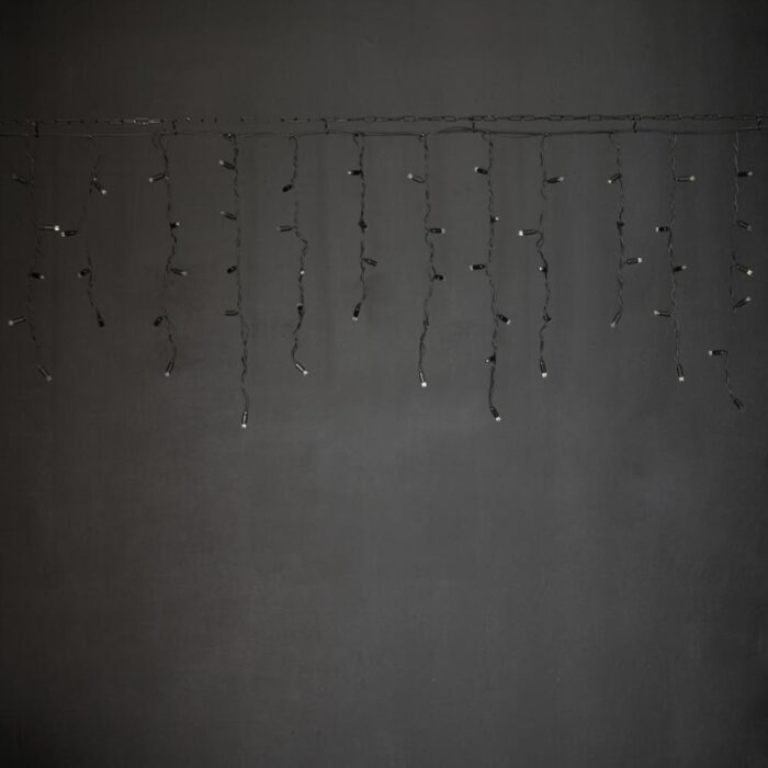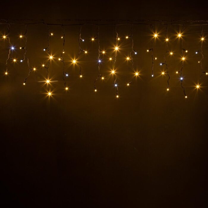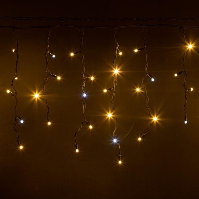 Надёжная бахрома 5×0,6 м с тёплым белым светом и эффектом лёгкого мерцания. 200 светодиодов, прочный чёрный каучук 3.3 мм, степень защиты IP65. Профессиональная гирлянда для уличного и всесезонного использования.