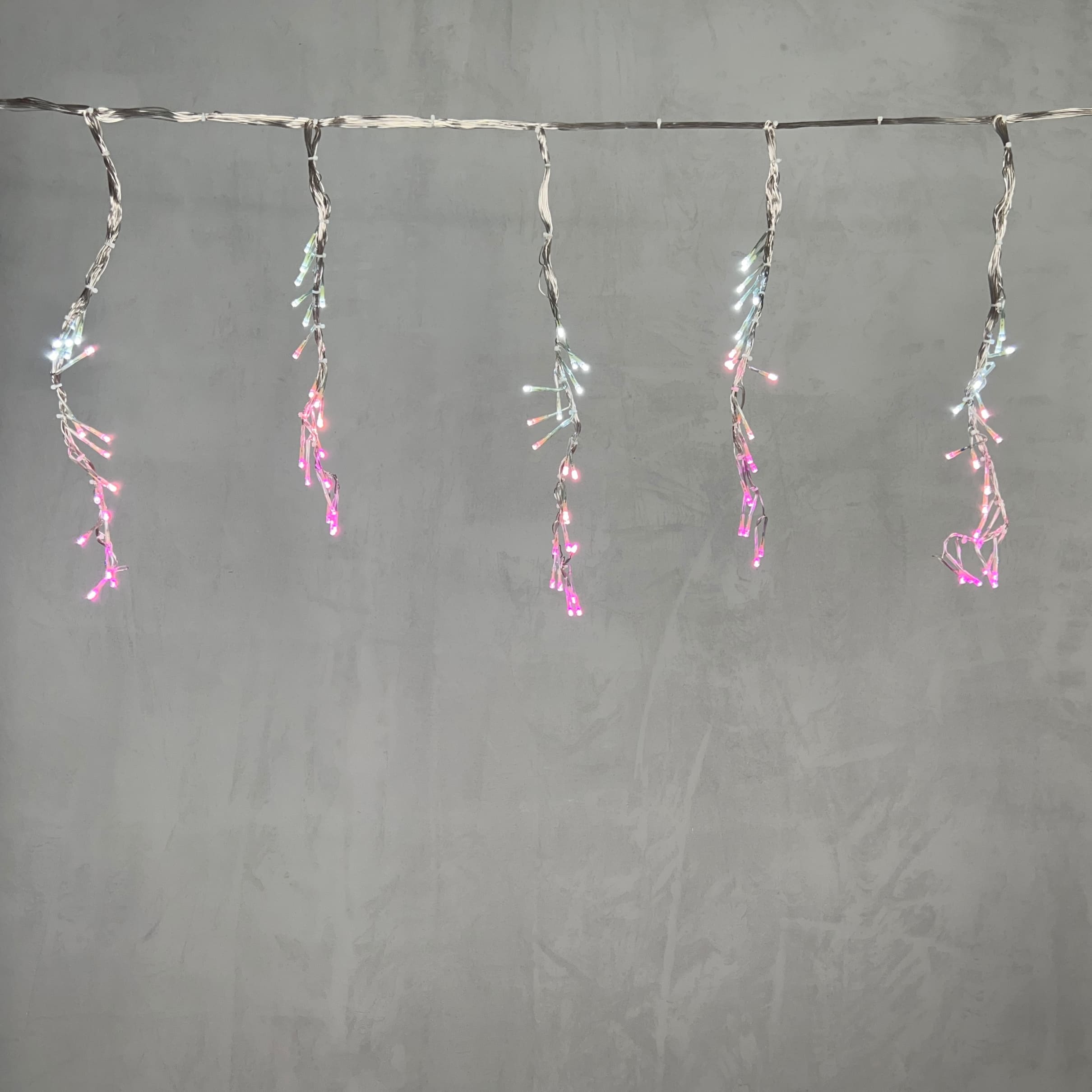 Гирлянда Бахрома Бегущий огонь 1,75 м, Бело-розовая Контроллер, 320 LED, IP65