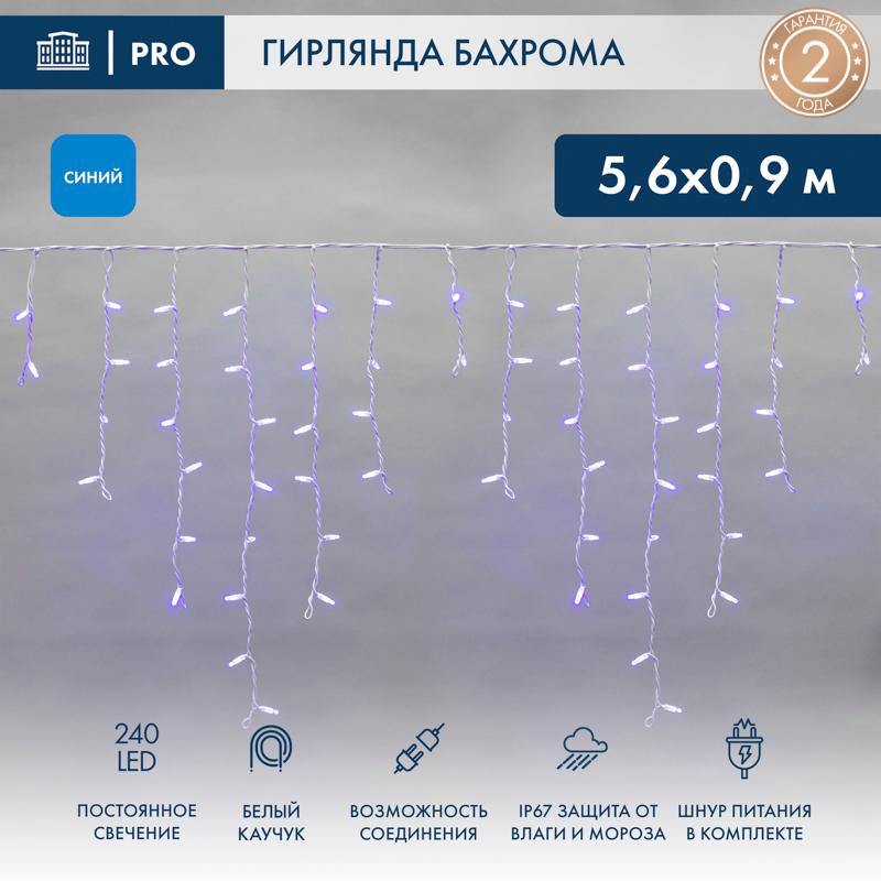 Гирлянда Бахрома 5,6×0,9 м Синий Статика, Провод Белый Каучук, IP67