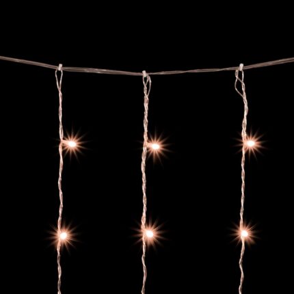 Гирлянда рассчитана на эксплуатацию при температуре от –25 до +40 °С. Защита IP44 позволяет безопасно использовать её на улице даже в снег, дождь и мороз. Прозрачный провод делает гирлянду практически незаметной днём, а вечером она превращается в поток мягкого света.