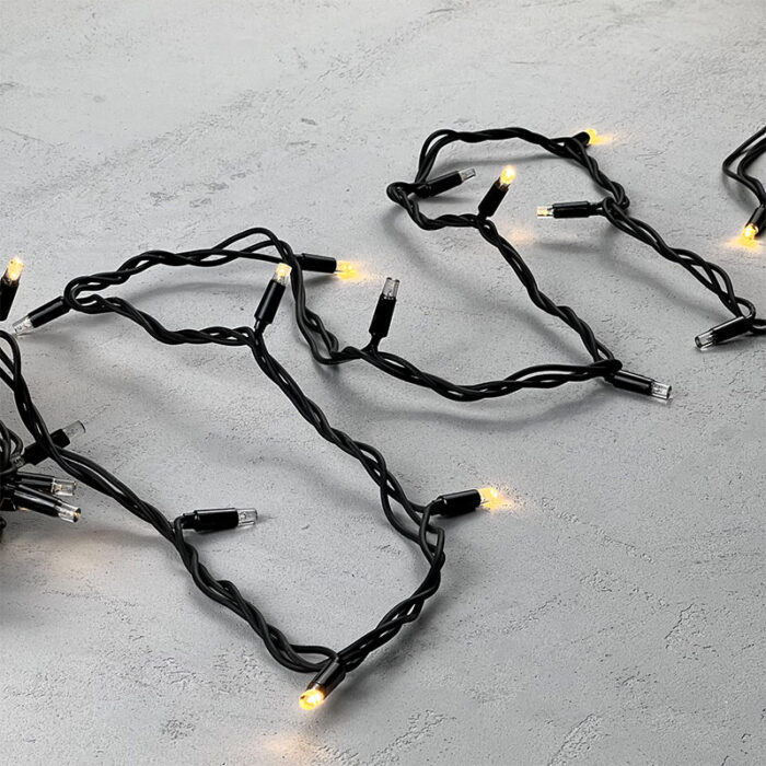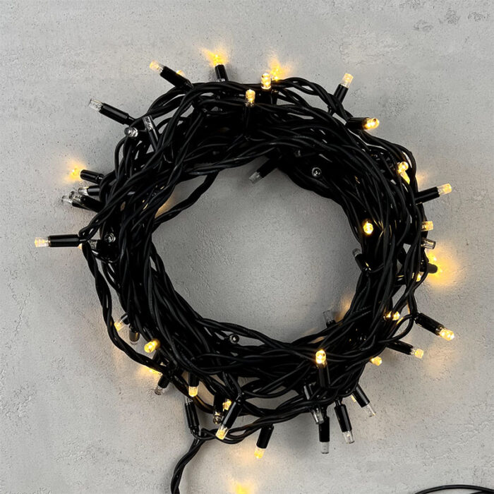 За счёт чёрного каучукового провода изделие устойчиво к механическим нагрузкам, не трескается на морозе и легко маскируется на фоне листвы или конструкций. IP65 и температурный режим от –30 до +40 °C позволяют использовать гирлянду круглый год — без опасений за надёжность.