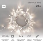 Гирлянда Нить 20 м Белая Статика, 200 LED, Белый ПВХ, IP65, NN