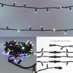 Надёжная гирлянда длиной 20 метров с ярким мультицветным свечением — решение для оформления деревьев, заборов и фасадов. Прочный чёрный каучуковый провод выдерживает мороз до −50 °C, а защита IP67 позволяет использовать гирлянду в любую погоду. Подключается к сети 230 В и потребляет всего 18 Вт. Соединяется до 15 штук в цепь.