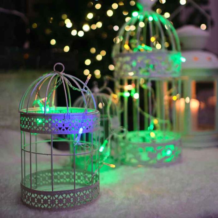 Прозрачный ПВХ-провод делает гирлянду практически невидимой на светлых поверхностях и в стеклянных или акриловых конструкциях. Днём она остаётся незаметной, а вечером её яркие огни создают ощущение, будто цветные искры парят в воздухе.