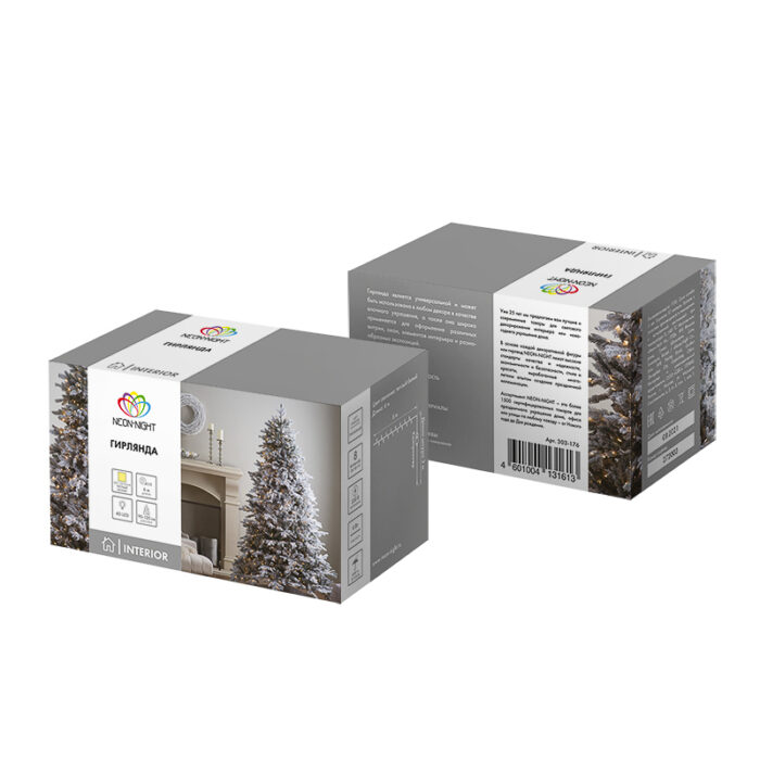 Длина гирлянды — 6 м, подходит для ёлок средней высоты или локального декора.
