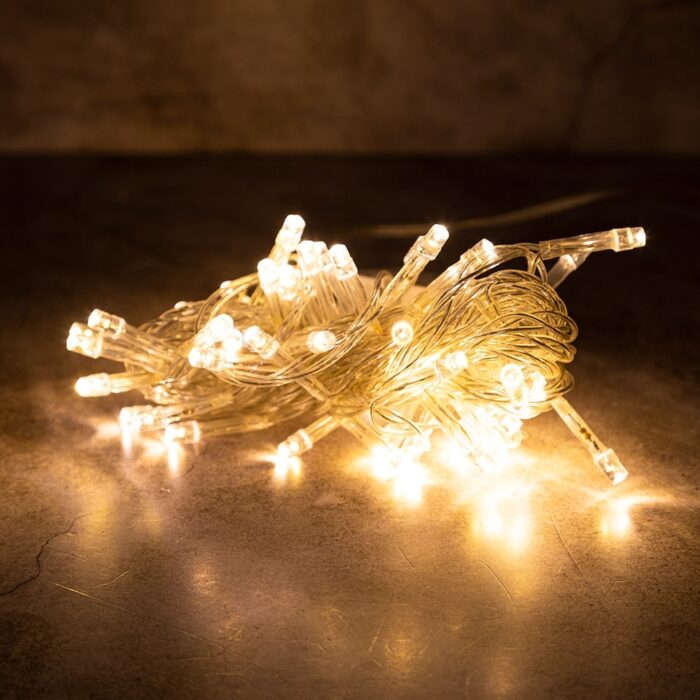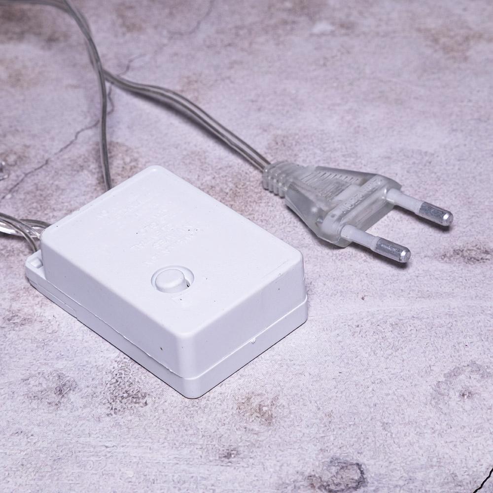 Прозрачный ПВХ-провод диаметром 1,6 мм остаётся практически невидимым на фоне ёлок, мебели или стен, позволяя выделять только свет и не перегружать декор лишними деталями. Это делает гирлянду особенно подходящей для оформления: