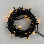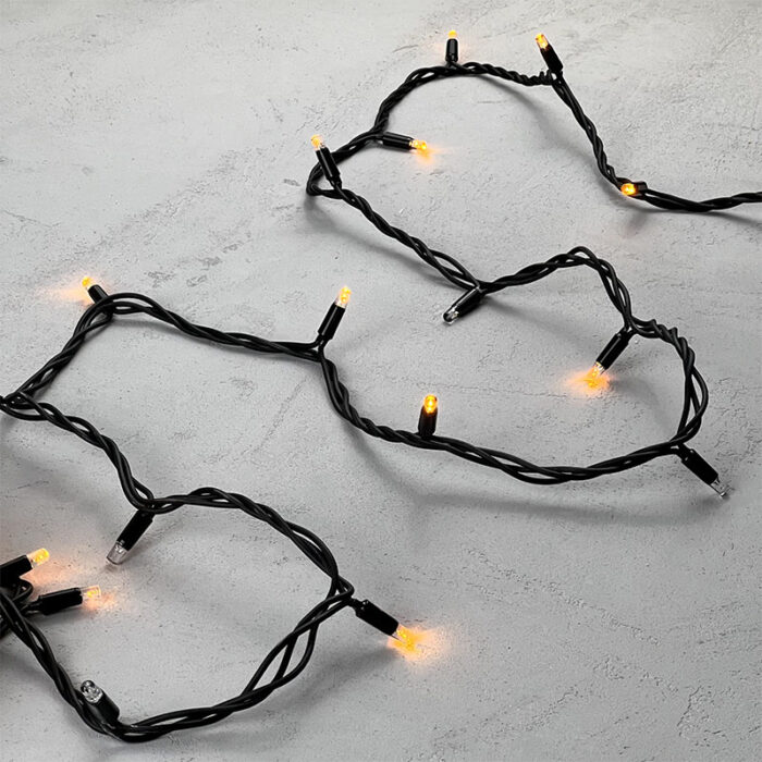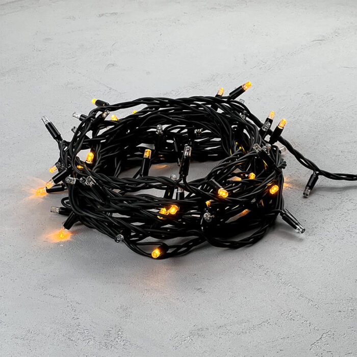 Надёжная уличная гирлянда нить длиной 10 метров с эффектом мерцания каждого диода. Яркий жёлтый свет создаёт праздничную атмосферу, а прочный чёрный каучуковый кабель и IP65 обеспечивают стабильную работу в любую погоду. Подходит для деревьев, заборов, колонн и перил.