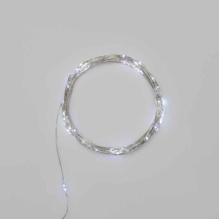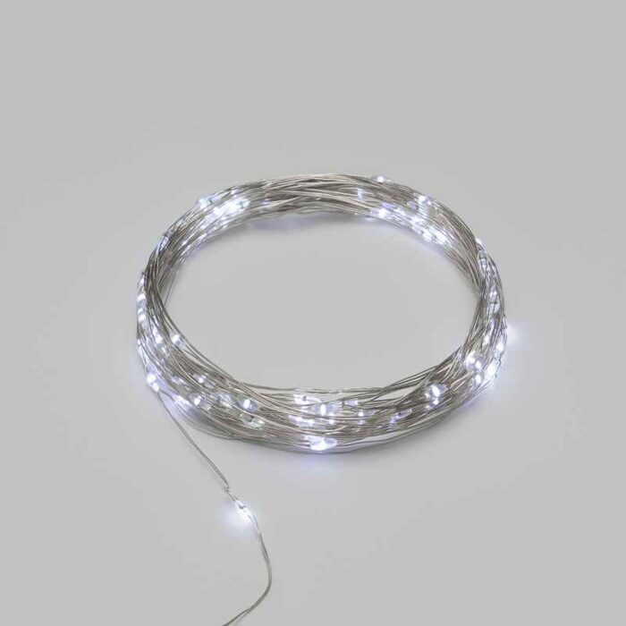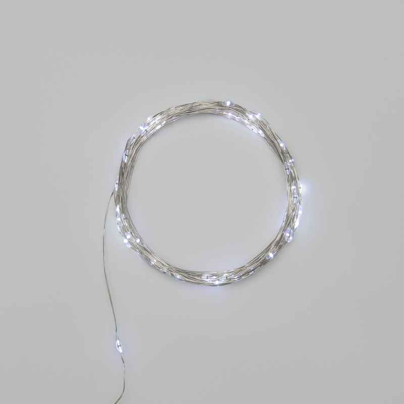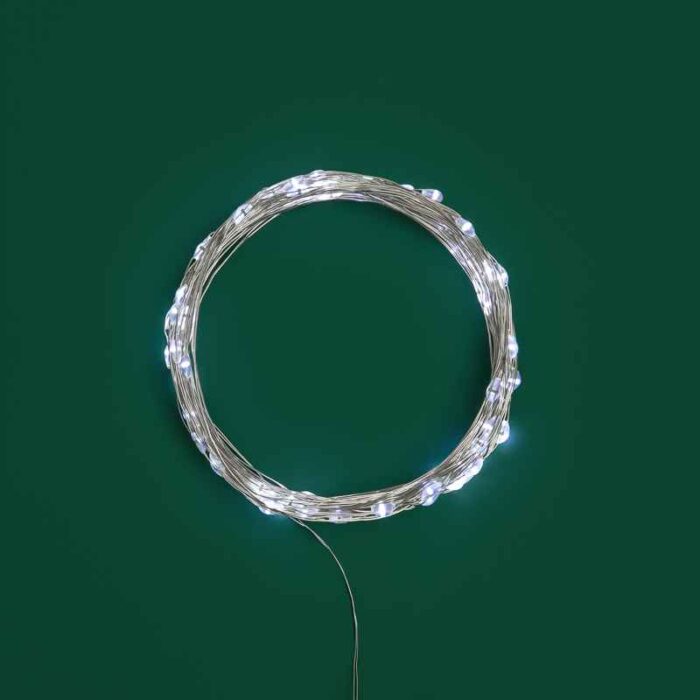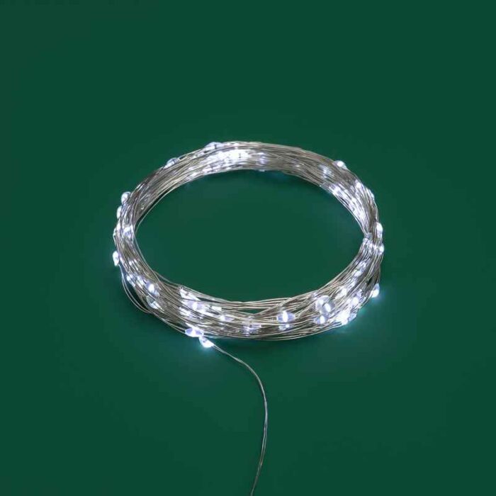 Стильная гирлянда «Роса» длиной 10 м с белым свечением и тонким серебристым проводом. Постоянный режим работы, питание от 5 В. Идеальна для интерьера и праздничного декора ёлок.