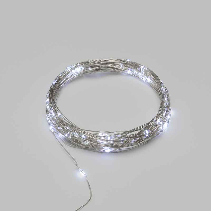 Гирлянда Роса 10 м Белая Статика, 100 LED, Серебристый провод, IP20, HOME
