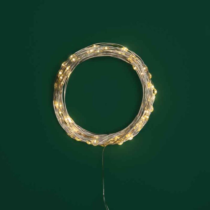Серебристый металлический провод аккуратно фиксируется на любых поверхностях с помощью хомутов, проволоки или декоративных зажимов. Лёгкая конструкция не утяжеляет декорируемый объект, а при необходимости гирлянду можно быстро снять и переместить.