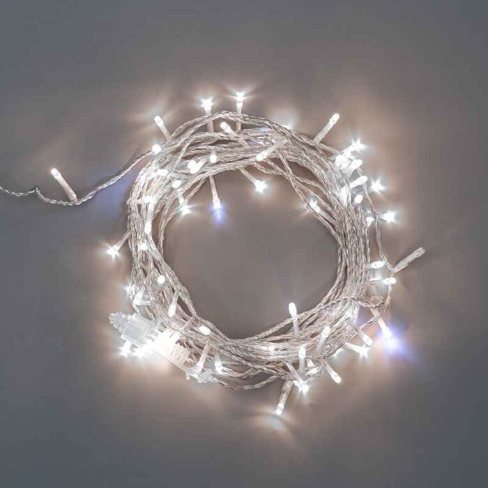 Эта модель длиной 20 метров включает 200 белых светодиодов с мягким эффектом мерцания. Свет не навязчив, не «бьёт в глаза», а как будто живёт своей жизнью: то замирает, то мягко пульсирует. Такая подсветка подойдёт и для новогоднего оформления, и для летнего вечера в саду.