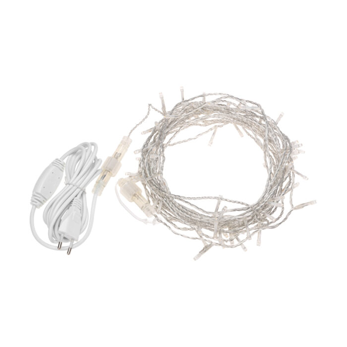 В комплект уже входит сетевой адаптер и шнур питания длиной 3 метра. Это удобно: не нужно искать дополнительные провода или использовать удлинители. Просто расправьте гирлянду, подключите к розетке — и готово.