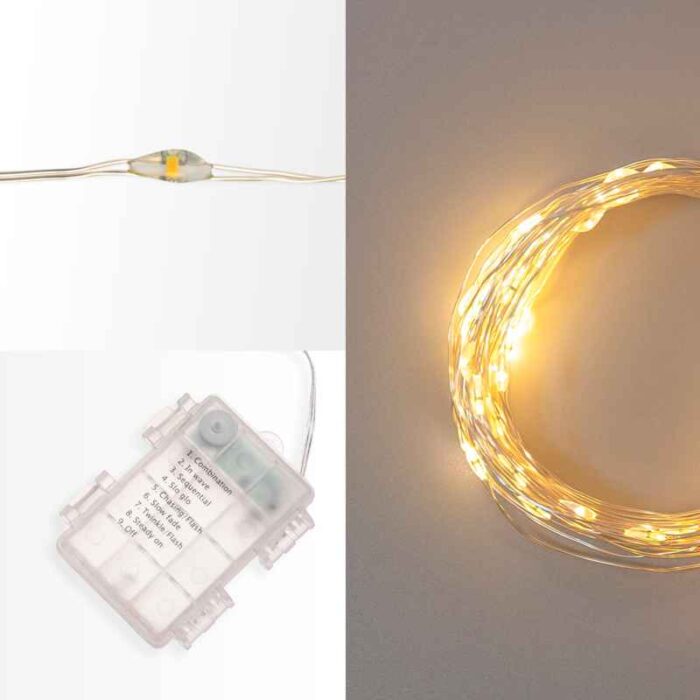 Лёгкая, изящная и универсальная гирлянда «Роса» длиной 20 м с тёплым динамичным свечением и серебристым проводом — идеальный вариант для декора деревьев, кустов, перил и веранд. Работает от батареек, подходит для улицы, проста в установке, не требует розетки.