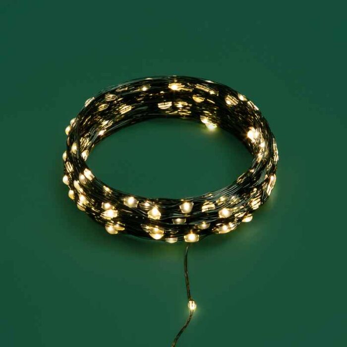 Лёгкая, как утренняя роса, эта гирлянда создаёт уютное и праздничное настроение. 200 тёплых диодов на гибком металлическом проводе легко вплетаются в ель, венок или декор. Идеальна для оформления интерьера, создаёт динамику за счёт 8 режимов свечения.