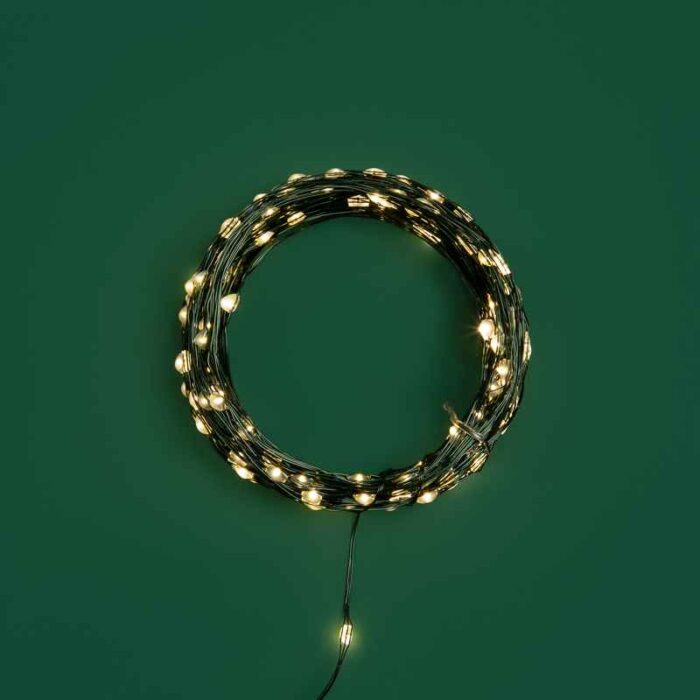 Гирлянда «Роса» — это не просто свет. Это тонкие искры уюта, которыми вы можете окутать любую новогоднюю композицию. 200 диодов на 20 метрах — идеальная плотность, чтобы ёлка, венок или даже окно заиграли мягким и тёплым светом. А тонкий тёмно-зелёный металлический провод почти незаметен среди веток — создаётся эффект, будто свет повис в воздухе.
