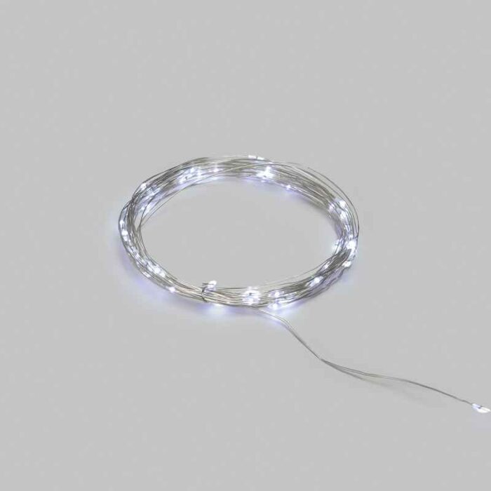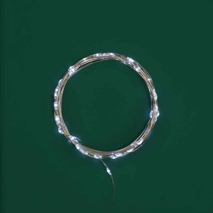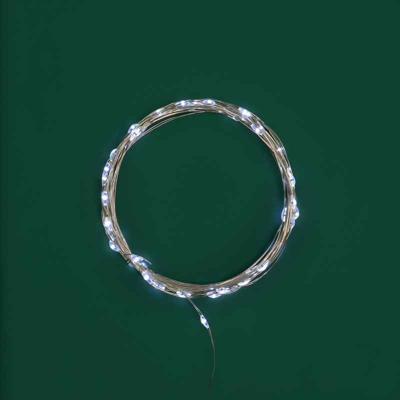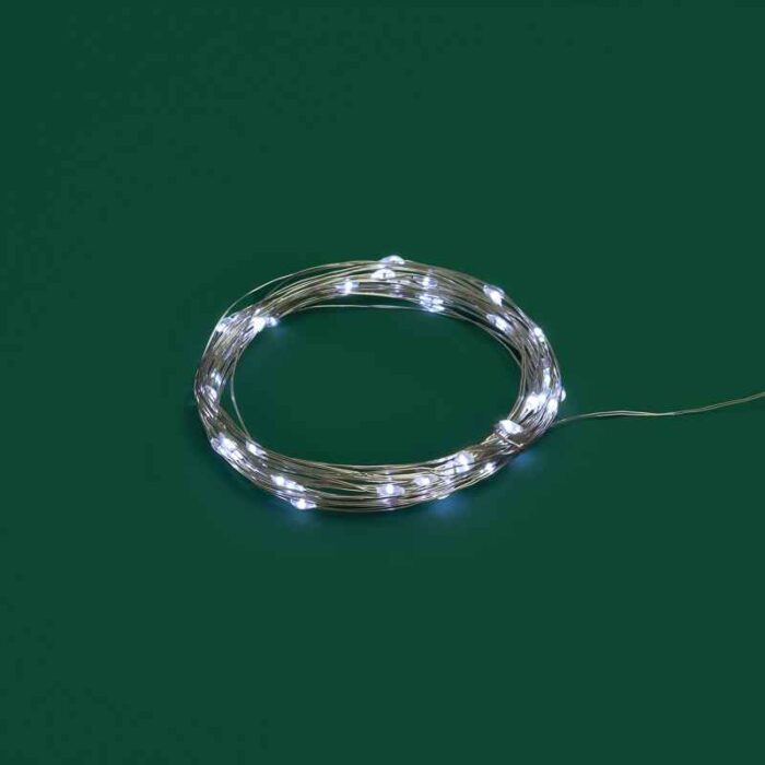 Гирлянда Роса 5 м Белая Статика, 50 LED, Серебряный металл, IP20, NN