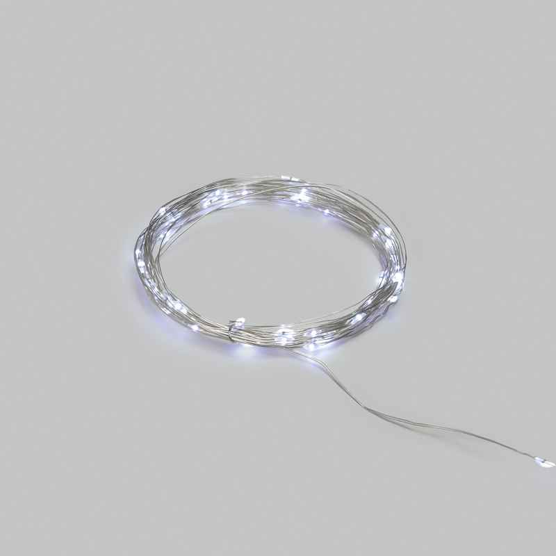 Миниатюрная гирлянда «Роса» длиной 5 м с белым свечением и серебристым металлическим проводом. 50 ярких LED-огоньков создают эффект сияющих капель. Подходит для изысканного декора внутри помещений, безопасна и готова к использованию.