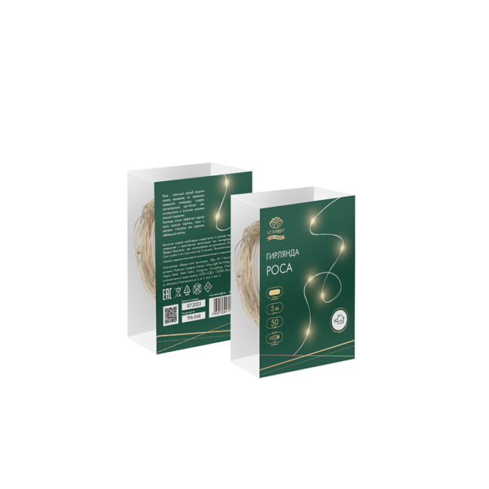 Гирлянда Роса 5 м Тепло-Белая получила своё название благодаря крошечным светодиодам, которые словно капельки утренней росы мерцают на тончайшем проводе. Тёплый белый оттенок света добавляет мягкости и уюта, создаёт ощущение тепла и комфорта, идеально подходя для создания романтической или праздничной атмосферы.