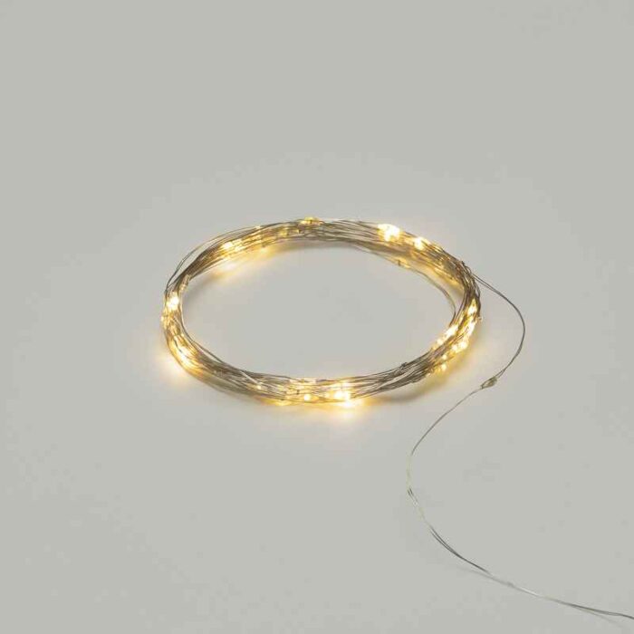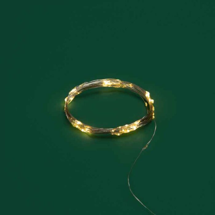 Тонкий металлический провод можно согнуть в любую форму — он держит изгиб и позволяет создавать уникальные декоративные линии. Гирлянда весит всего 20 г, поэтому легко крепится даже на бумажных или текстильных элементах без утяжеления конструкции.
