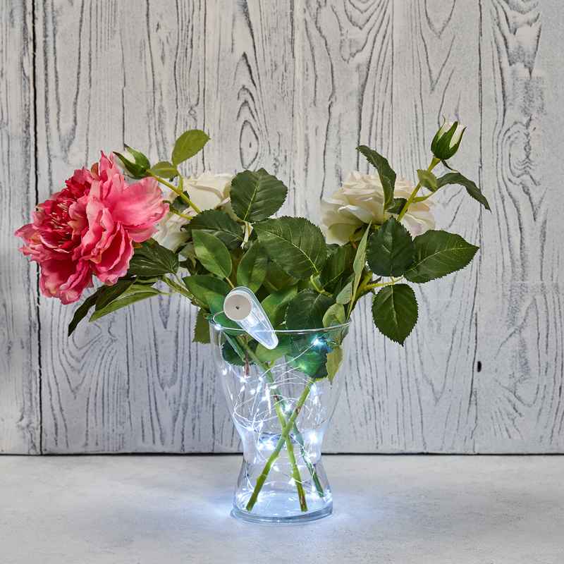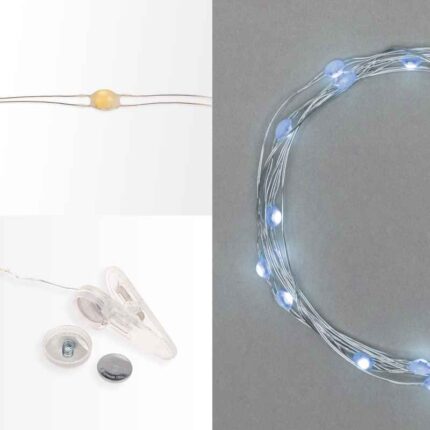 Элегантная гирлянда Роса длиной 3 м с 30 тёплыми белыми огоньками и прозрачными прищепками для фото и открыток. Питание от батареек делает её удобной для размещения в любом месте дома.