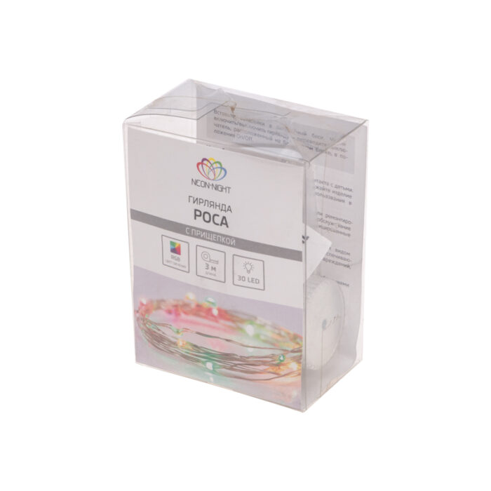 Гирлянда Роса с прищепкой 3 м Мультиколор Статика, 30 LED, Серебряный металл, IP20, NN