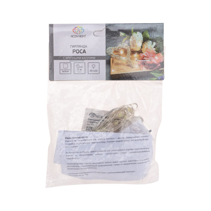Гирлянда Роса с крупными каплями 2 м Белая — это эффектное и компактное решение для тех, кто ценит гармонию, чистоту и элегантность в декоре. Отлично подойдёт для праздничного оформления дома, витрин или фотозон, создавая атмосферу лёгкости и торжества.