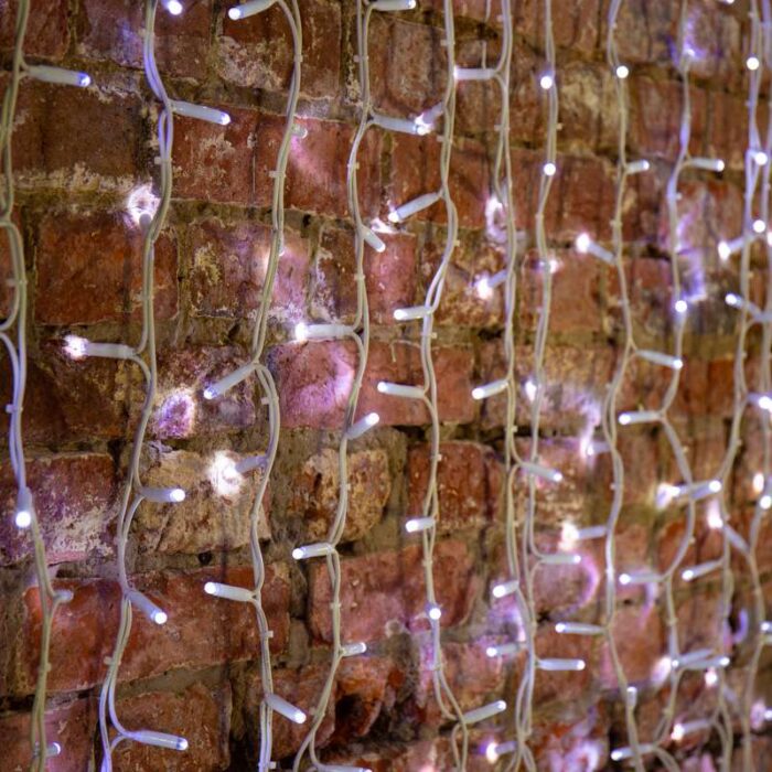 Гирлянда-занавес 2×1,5 м с чистым белым свечением создаёт атмосферу элегантности и торжества. Универсальный оттенок подходит как для новогоднего и праздничного оформления, так и для постоянного декоративного освещения фасадов, витрин, входных групп или колонн.
