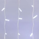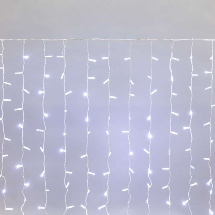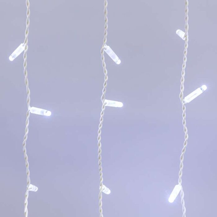 Белая светодиодная гирлянда-занавес 2×1,5 м — это универсальное решение для архитектурного и праздничного освещения. Белый свет ассоциируется с чистотой, свежестью и строгостью. Он подходит как для торжественных мероприятий, так и для минималистичного оформления фасадов, витрин и входных групп.