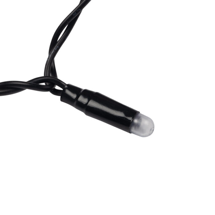 Чёрный провод особенно востребован для монтажа на тёмных стенах, кованых заборах, колоннах и каркасах сцен. Он не «засвечивается» при работе гирлянды, поэтому весь акцент остаётся на ярком белом свете.