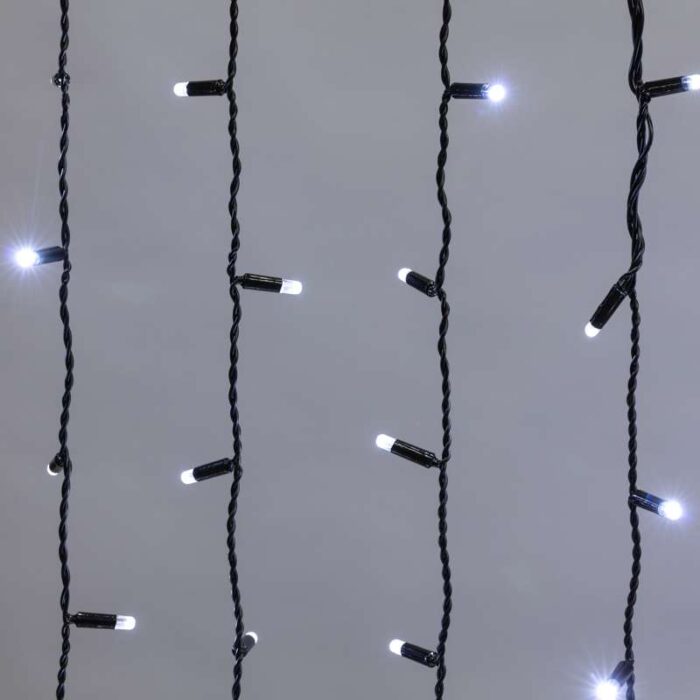 Гирлянда занавес 2×1,5 м Белый Статика, 300 LED, чёрный ПВХ, IP65