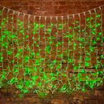 Профессиональная гирлянда-занавес 2×1,5 м с глубоким зелёным светом. 360 LED, морозостойкий белый каучуковый кабель, IP67. Подходит для фасадов, деревьев, витрин и праздничных композиций.